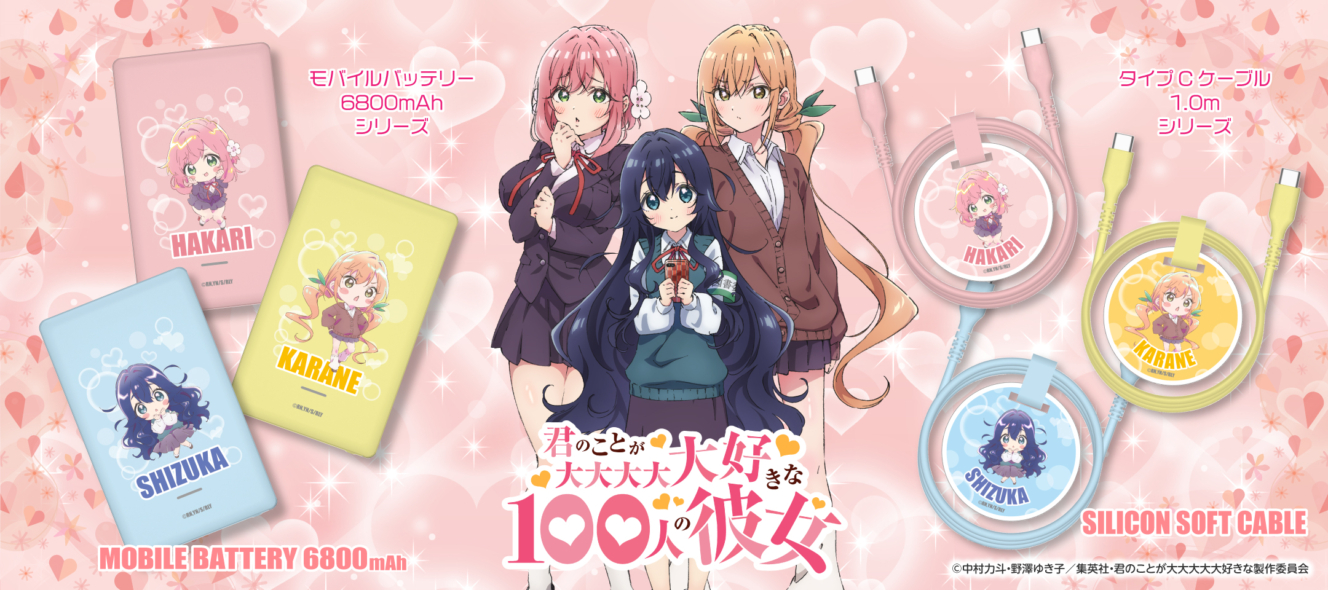 人気アニメ「君のことが大大大大大好きな100人の彼女」のキャラクターをデザインした「モバイルバッテリー」、「タイプCケーブル」を3月29日より各ECサイトほかにて販売を開始いたします。