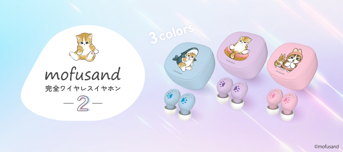 多摩電子工業株式会社は、「mofusand完全ワイヤレスイヤホン2」(品番:SQ-BS75シリーズ)全3種を、7月20日より各ECサイトほかで、各3,980円(税込)にて販売を開始いたします。