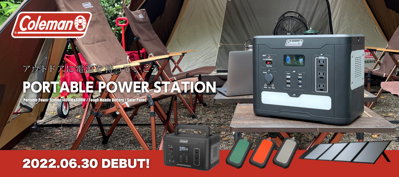 バッテリー、充電器製造の国内実績の高い多摩電⼦⼯業株式会社は、ニューウェルブランズ・ジャパン合同会社コールマン事業部(以下略:コールマン)と、初のコラボレーション商品 ポータブル電源2種・ソーラー充電器・モバイルバッテリー3種を、2022年6⽉末より順次発売いたします。