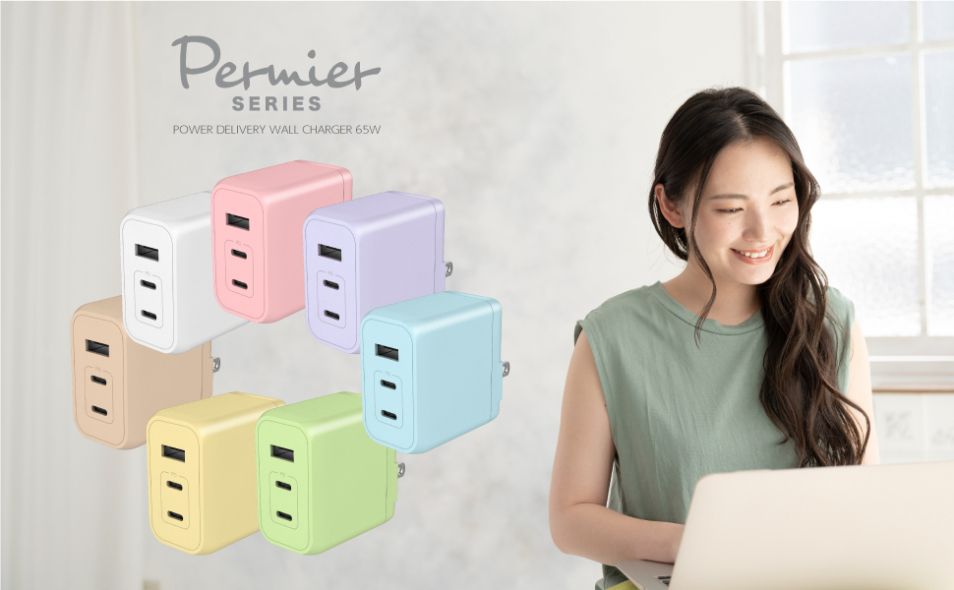 多摩電⼦⼯業株式会社(本社:神奈川県川崎市、代表取締役 執⾏役員社⻑ ⻑⾕川 智之)は、急速充電PD(Power Delivery)最大65W対応Permier(ペルミアー)「PR-AP146UC2」シリーズを11月17日(金)に発表します。USB-C×2ポート、USB-A×1ポートを備えたAC充電器。GaN(窒化ガリウム) や折りたたみ式プラグを採用し、質量約123gと軽量で手のひらサイズのコンパクトさを実現しました。カラーバリエーションは全7色。ホワイト、チェリーブロッサム、ラベンダー、ベビーブルー、ピクニックグリーン、レモンイエロー、カフェラテからお好みでお選びいただけます。価格はいずれも3,580円(税込)。直販Webサイト(多摩電⼦⼯業ダイレクト、多摩電⼦⼯業 楽天市場店、多摩電⼦⼯業 Yahoo!ショッピング店、多摩電子工業Amazon店)にて11月下旬より順次発売予定です。