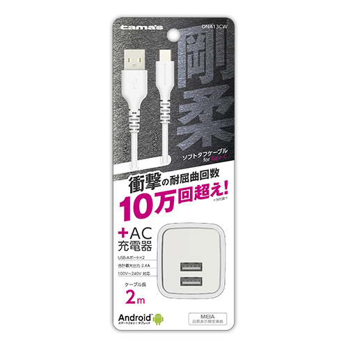 ・衝撃の耐屈曲回数10万回越え!+AC充電器※当社調べ