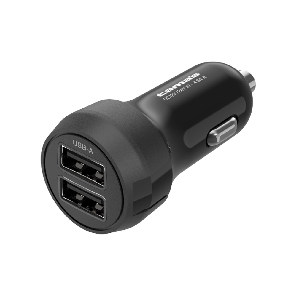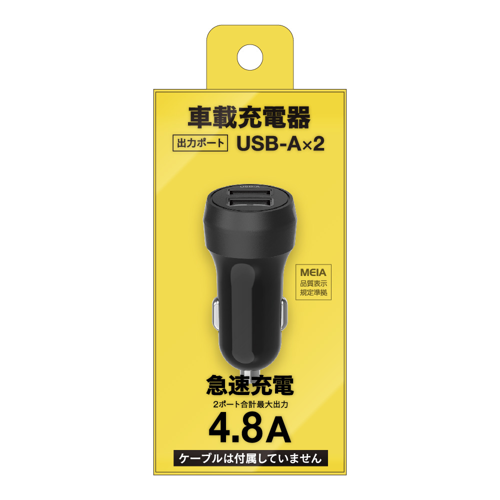 ●車のアクセサリーソケットでスマートフォンやタブレットを急速充電できる車載充電器。