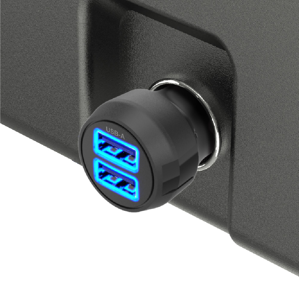 ●暗い車内でも差し込み口が分かりやすいブルーに光るUSB-Aポート。
