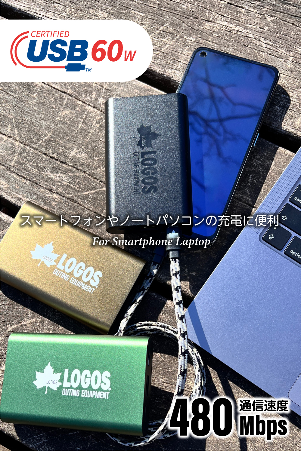 ケーブル定格60W(20V 3A)