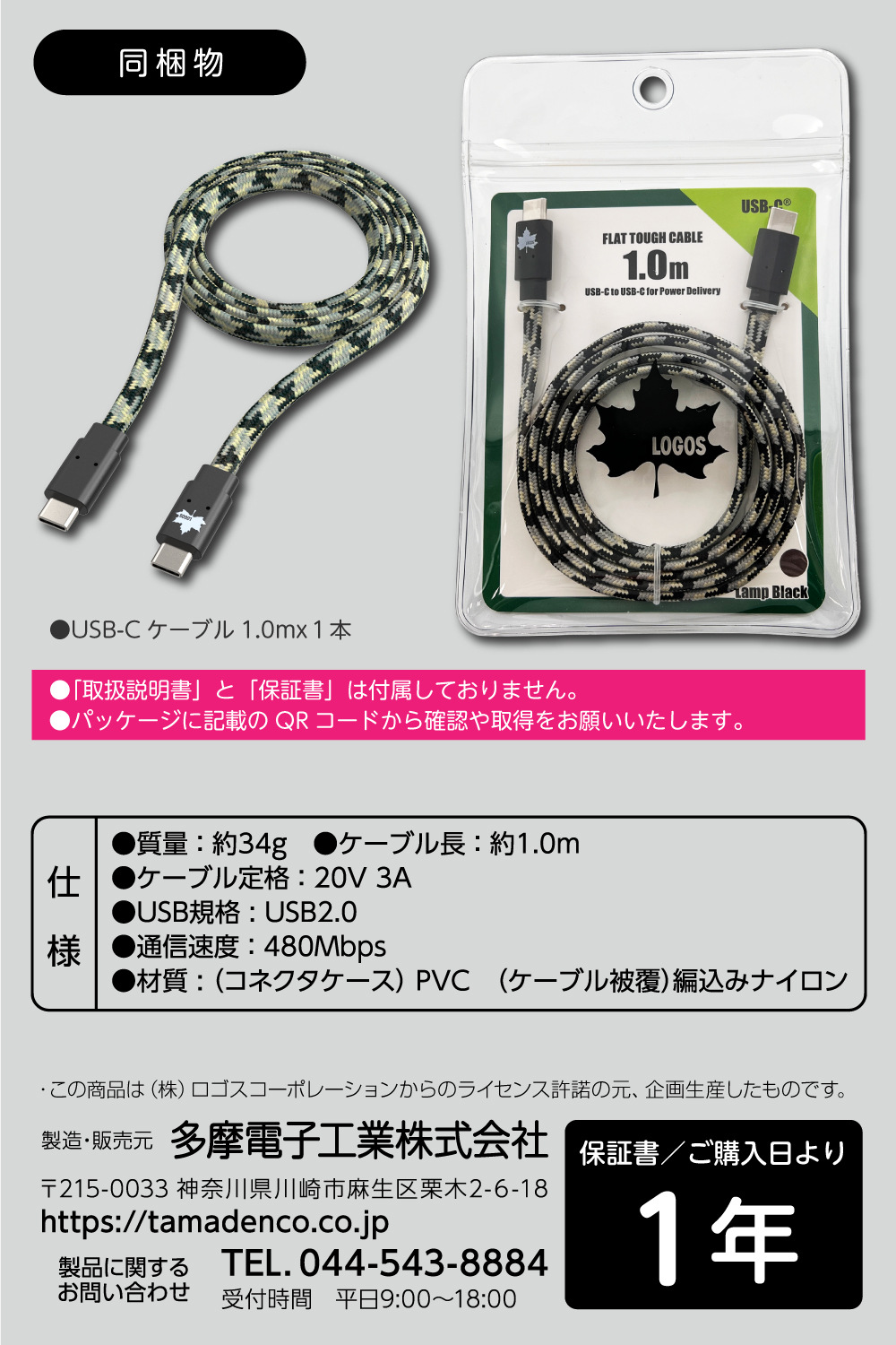 ケーブル長1.0m