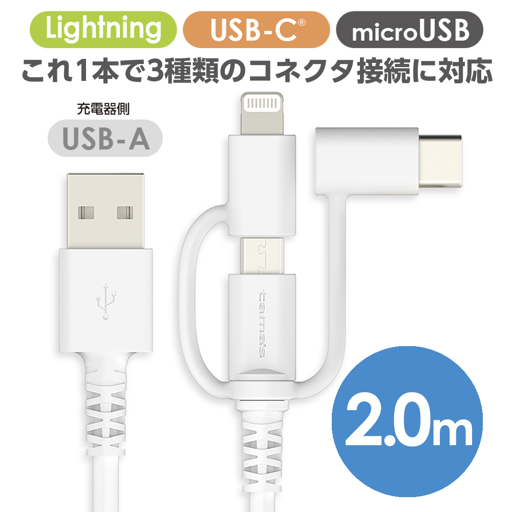 充電 ケーブル LH315LSC20W 3in1変換式USBケーブル 2.0m Lightning・Type-C・microUSBコネクタの3in1USBケーブル 充電・データ転送可能 しなやかに曲がり断線しにくいロングライフケーブル ケーブル長約2.0m 取扱説明書ダウンロード 適合表 購入する 法人様向け製品問い合わせフォーム SKU・ LH315LSC20W Categories: ALL, その他, カタログ L ケーブル 購入予定から削除購入予定に追加 Share