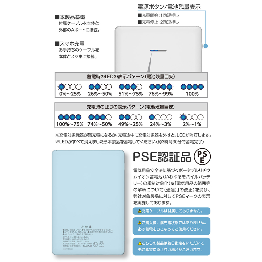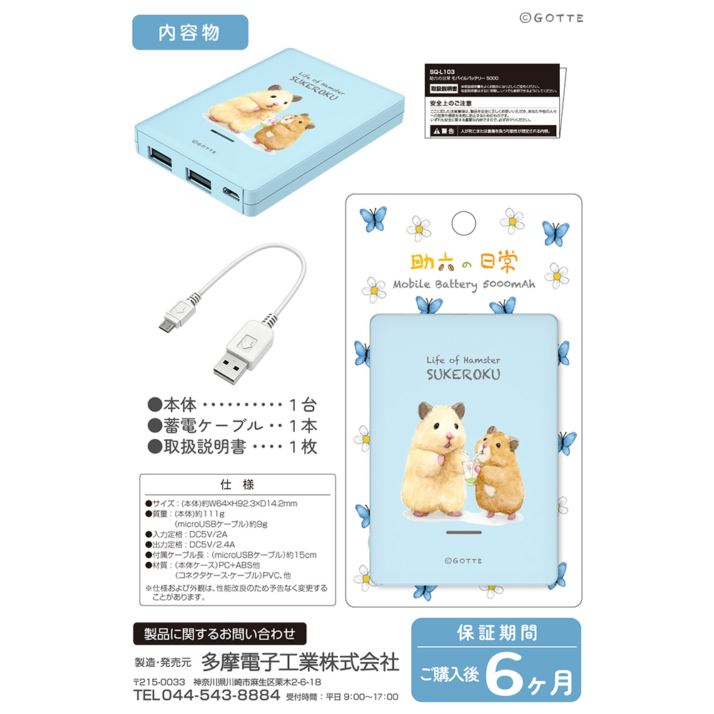 モバイルバッテリー SQ-L103-BBSR2 助六の日常 モバイルバッテリー5000mAh ブルー ●約500回繰り返し使える!経済的なリチウムイオンポリマー電池を採⽤したモバイルバッテリー5000mAh。 ●USB-Aポート×2で2台同時充電が可能。 ●本体蓄電microUSBケーブル15cm付属。 取扱説明書ダウンロード 適合表 購入する 法人様向け製品問い合わせフォーム SKU・ SQ-L103-BBSR2 Categories: 5000mAh~, ALL, カタログ, モバイルバッテリー, モバイルバッテリー, 製品カタログ(c_c 2025~) コラボ企画 購入予定から削除購入予定に追加 Share