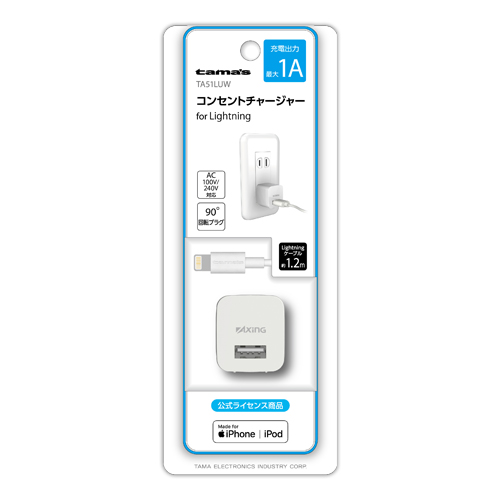 Lightningコネクタ搭載のiPhone・iPod対応AC充電器。