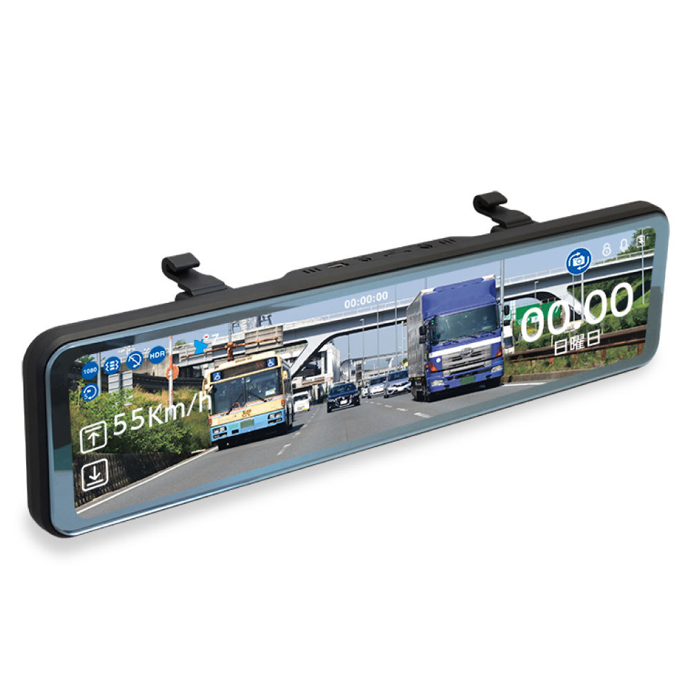 ●前後2台のカメラで同時録画!ルームミラー型ドライブレコーダー。