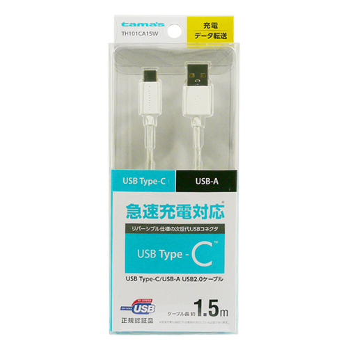 パソコンに接続して充電やデータ転送、AC/車載充電器などに接続して充電が可能なスマートフォン・タブレット用USB Type-Cケーブル。