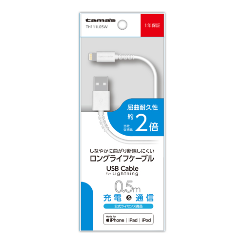 充電 ケーブル TH111L05W Lightning USB Cable 50cmW しなやかに曲がり断線しにくいロングライフケーブル 2.4A出力で、純正Lightningケーブル相当の充電に対応。※電源側が2.4A出力に対応している必要があります。 充電だけでなくiTunesとの同期も可能。 しなやかに曲がり断線しにくい(当社比約2倍) 独自設計のロングブッシュ 適合表 購入する 法人様向け製品問い合わせフォーム SKU・ TH111L05W Categories: ALL, USB-A & ライトニング, カタログ, ライトニング, 充電ケーブル, 製品カタログ(c_c 2025~) tama's 購入予定から削除購入予定に追加 Share