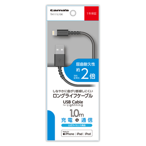 充電 ケーブル TH111L10K Lightning USB cable 1mBK しなやかに曲がり断線しにくいロングライフケーブル 2.4A出力で、純正Lightningケーブル相当の充電に対応。※電源側が2.4A出力に対応している必要があります。 充電だけでなくiTunesとの同期も可能。 しなやかに曲がり断線しにくい(当社比約2倍) 独自設計のロングブッシュ 適合表 購入する 法人様向け製品問い合わせフォーム SKU・ TH111L10K Categories: ALL, USB-A & ライトニング, カタログ, ライトニング, 充電ケーブル, 製品カタログ(c_c 2025~) tama's 購入予定から削除購入予定に追加 Share