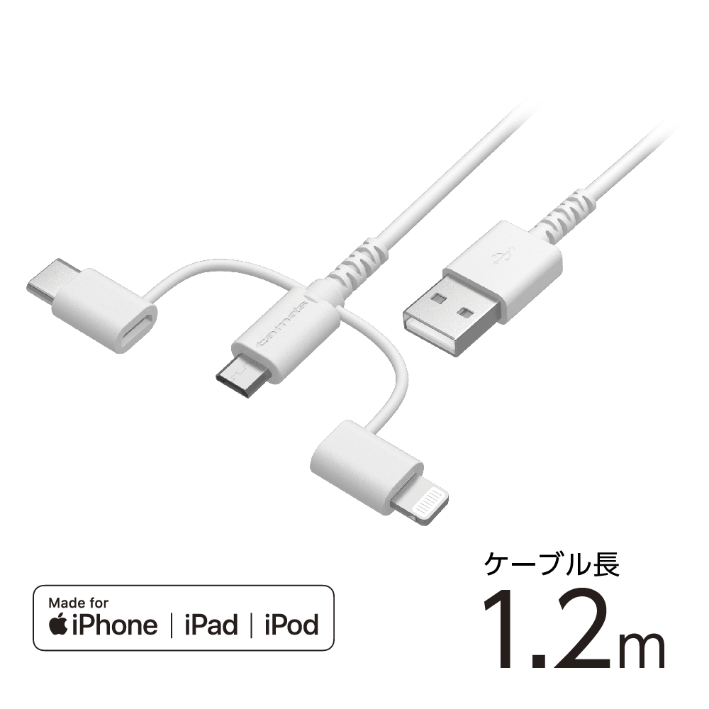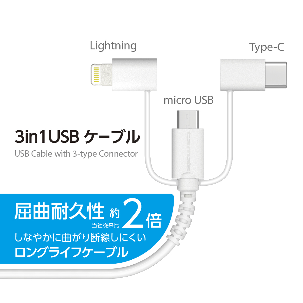 充電 ケーブル TH142LSCW microB&Lightning&TypeC1.2 Lightning・Type-C・microUSBコネクタの3in1USBケーブル 充電・データ転送可能 しなやかに曲がり断線しにくいロングライフケーブル ケーブル長約1.2m 取扱説明書ダウンロード 適合表 購入する 法人様向け製品問い合わせフォーム SKU・ TH142LSCW Categories: 3in1 & 2in1, ALL, その他, カタログ, 充電ケーブル, 製品カタログ(c_c 2025~) tama's 購入予定から削除購入予定に追加 Share
