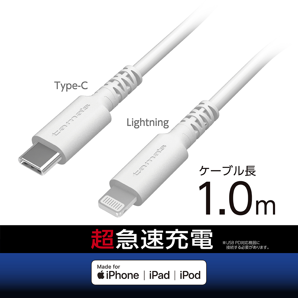 充電器 ケーブル TH212LC10W C to Lケーブル 1.0m ●iPhone/iPad/iPodの、最大60Wの高速充電やデータ転送が可能なUSB PD(Power Delivery)に対応のC to Lケーブル。※USB PD対応機器に接続する必要があります。 ●コネクタの根元を強化、高機能繊維配合で、断線に強い。 取扱説明書ダウンロード 適合表 購入する 法人様向け製品問い合わせフォーム SKU・ TH212LC10W Categories: ALL, USB-C & ライトニング, カタログ, ライトニング, 充電ケーブル, 製品カタログ(c_c 2025~) tama's 購入予定から削除購入予定に追加 Share