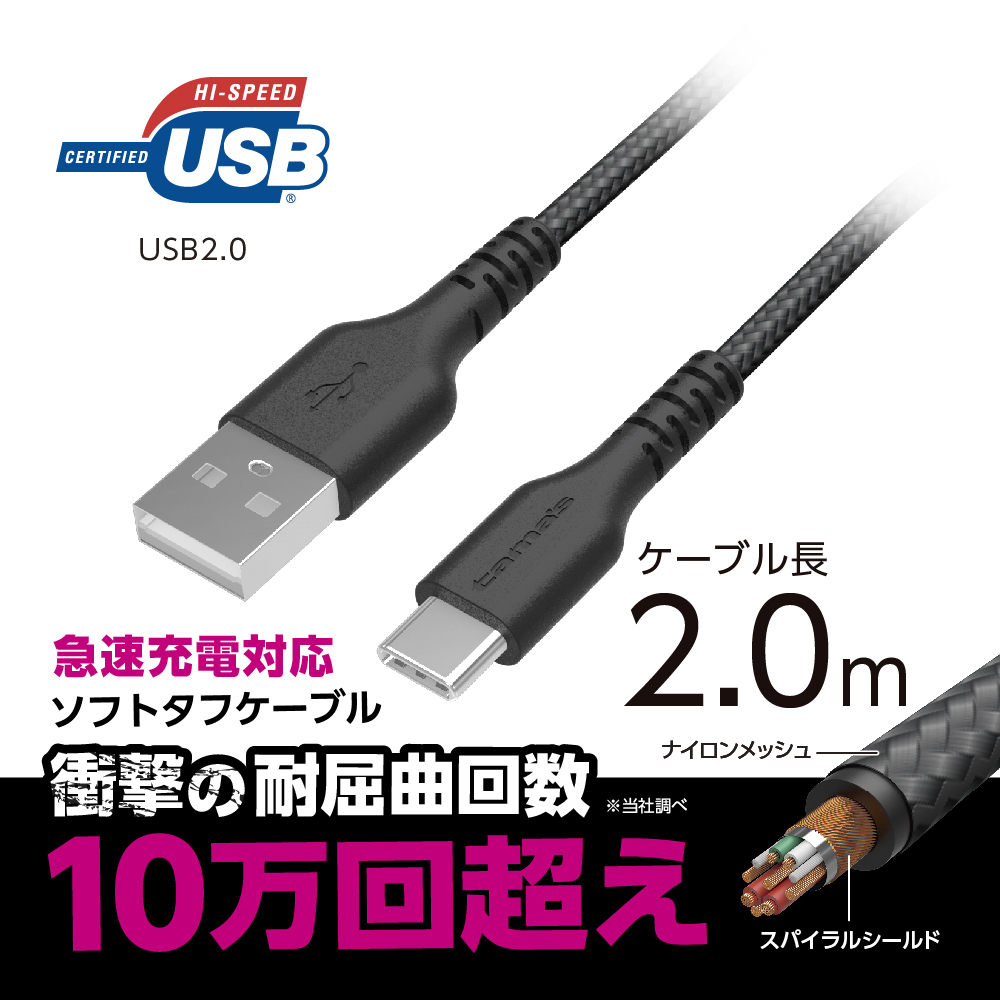 ●材質:PVC(コネクタケース)TPE・ナイロン繊維(ケーブル被覆部)