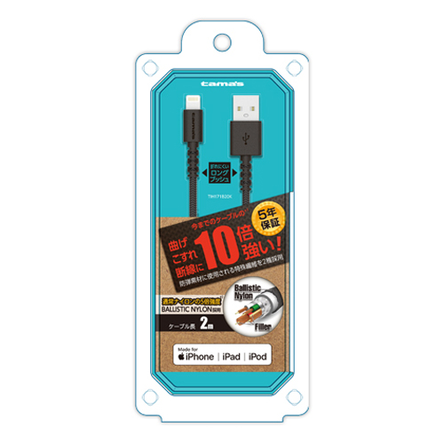 曲げ、こすれ、断線に強いスーパータフケーブル。