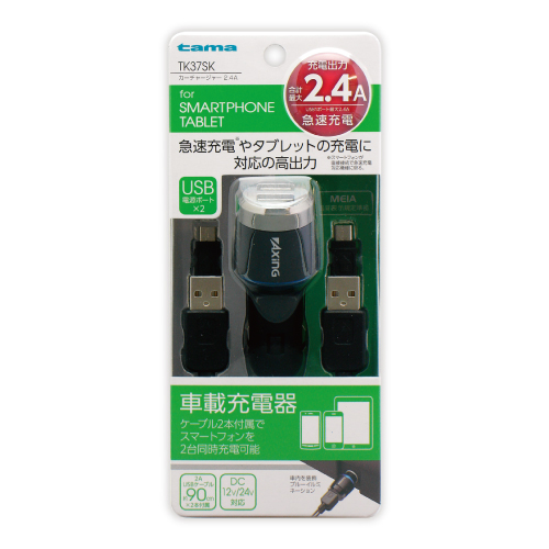 クルマで簡単にスマートフォン・タブレットを充電できる車載充電器。