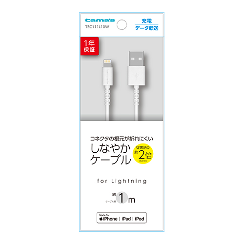 充電器 ケーブル TSC111L10W Lightningストレートケーブル1.0m コネクタの根元が折れにくい、しなやかケーブル iPhone・iPodはもちろん、iPadは2.4A出力の純正Lightning相当の充電に対応。 ※電源側が2.4A出力に対応している必要があります。 充電だけでなくiTunesとの同期も可能。 適合表 購入する 法人様向け製品問い合わせフォーム SKU・ TSC111L10W Categories: ALL, カタログ, ライトニング tama's 購入予定から削除購入予定に追加 Share
