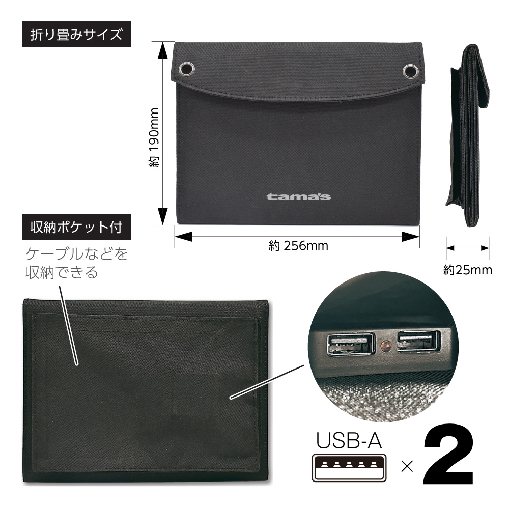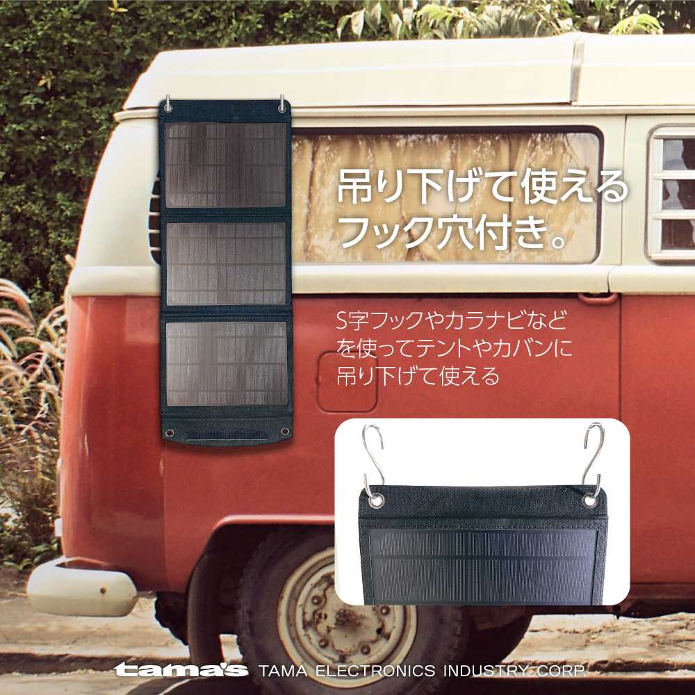 電気のない場所でも太陽光を電力に変換!USB-Aポートからスマートフォンなどに直接充電できる!