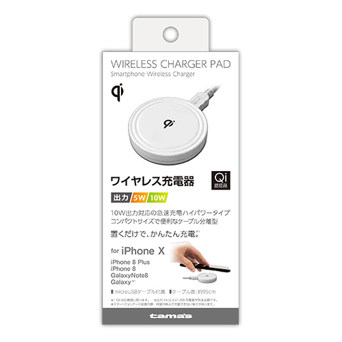 充電器 TWC09W Qiワイヤレス充電パッド10Wホワイト Qi対応スマートフォンを置くだけで充電できるワイヤレス充電器。 ワイヤレス急速充電に対応ハイパワー10Wモデル。 直径約6cmのコンパクトサイズ。 出力2A以上のUSB充電器が別途必要です。 10W急速充電にはQuick Charger2.0/3.0対応のUSB充電器をご使用下さい。 取扱説明書ダウンロード 適合表 購入する 法人様向け製品問い合わせフォーム SKU・ TWC09W Categories: ALL, その他, カタログ, ワイヤレス充電器, 充電器, 製品カタログ(c_c 2025~) tama's 購入予定から削除購入予定に追加 Share